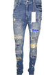 These Jeans feature distressed design and biker fit. They fit true to size and are made of stretch fabric. Designed in Los Angeles.