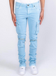 This premium "Slim Fit" denim is a classic 5 pocket with tapered legs. The 12oz Japanese Denim is 98% cotton and 2% lycra. The stripes are high density airbrushed by hand with a quality chain featuring the Reelistik logo. The pants are a garment dyed and should not be washed on warm with light colors.