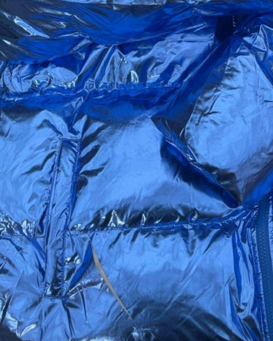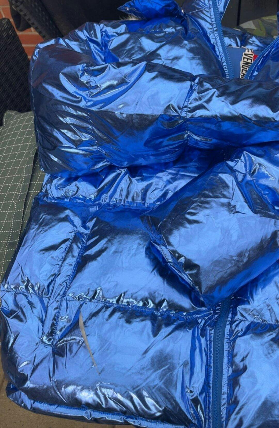 The jacket lost its blue colour already i hard glitters all in my neck after paying over 200€